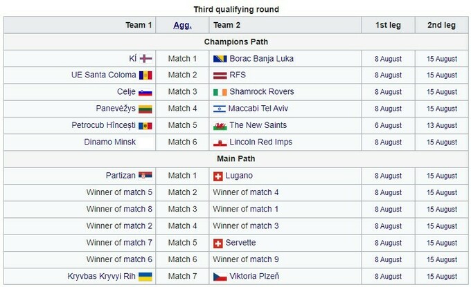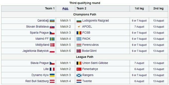 Пары Q3 Лиги Европы (Путь чемпионов)