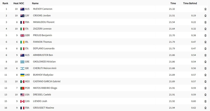 Старт полуфинальных заплывов на 50 м вольным стилем у мужчин запланирован на сегодня, 1 августа, ориентировочное начало – в 21:37 по Киеву.