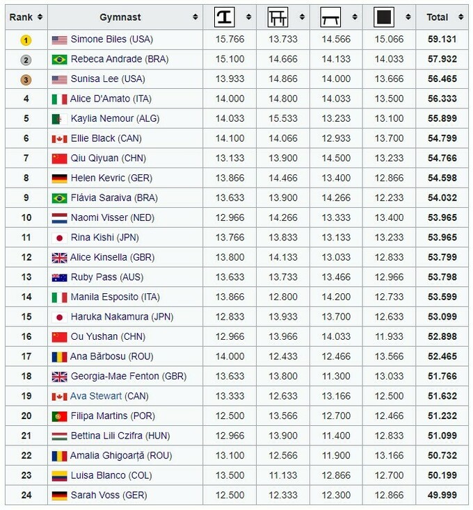 - 1. 🥇 Симона Байлз (США)