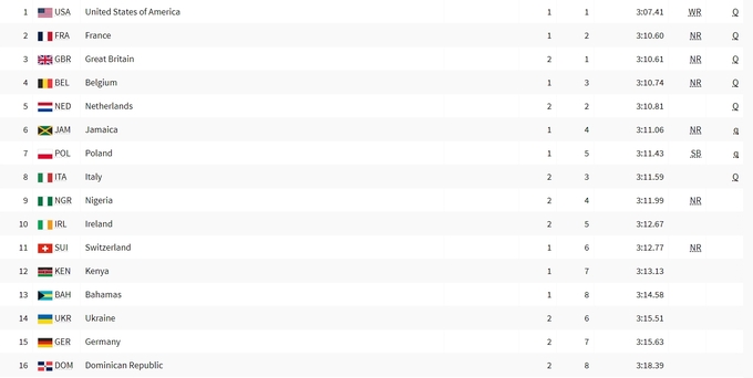 Лучшей в квалификации стала сборная США, которая вышла в финал с мировым рекордом.