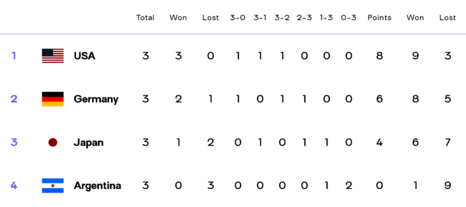 И, наконец, в группе С Германия в трех сетах разобралась с Аргентиной, а сборная США обыграла Японию 3:1.