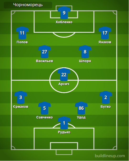 «Черноморец»: Рудько – Ермаков, Савченко, Удод, Бутко – Васильев (Габелок, 73), Арсич (Лотоцкий, 86), Шпорн – Попов (Пшеничнюк, 73), Хобленко, Янаков (Калин, 68).