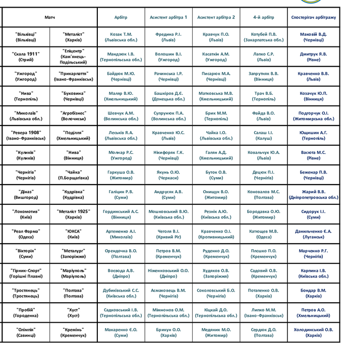 Комитеты Украинской ассоциации футбола назначили официальных лиц на матчи первого предварительного этапа Кубка Украины сезона 2024/2025.