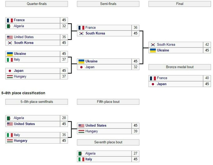 Южная Корея выиграла у США (45:35) и Франции (45:36). В матче за бронзу Япония выиграла у Франции (45:40).