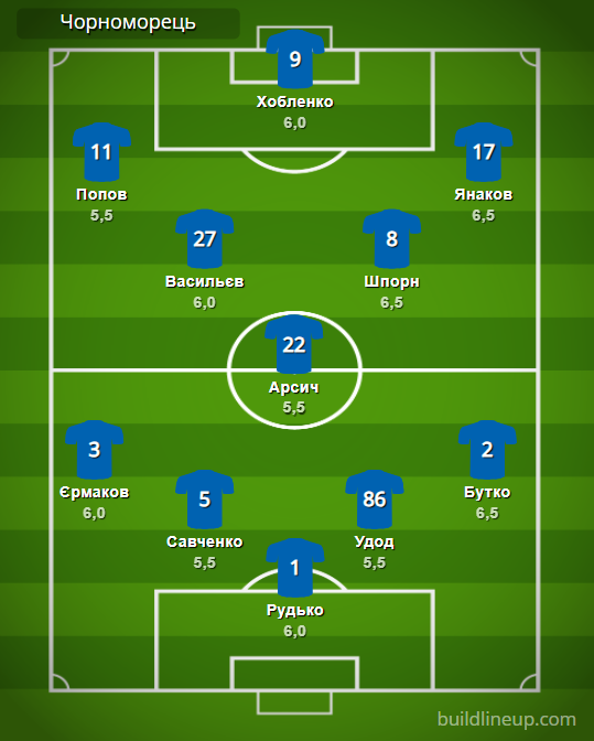 «Черноморец»: Рудько – Ермаков, Савченко, Удод, Бутко – Васильев (Габелок, 73), Арсич (Лотоцкий, 86), Шпорн – Попов (Пшеничнюк, 73), Хобленко, Янаков (Калин, 68).