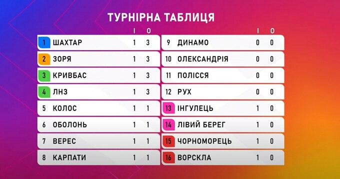 Турнирная таблица после 1-го тура. Кто стал лидером на старте сезона УПЛ?