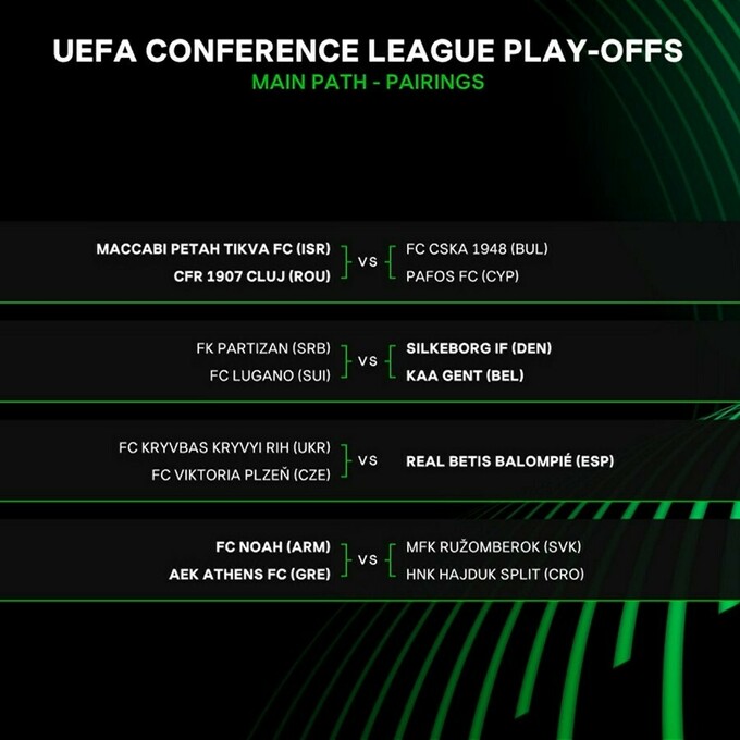 Команды, которые выиграют противостояния Q4 ЛК, получат путевки в основной раунд Лиги конференций, а проигравшие вылетят из еврокубков.