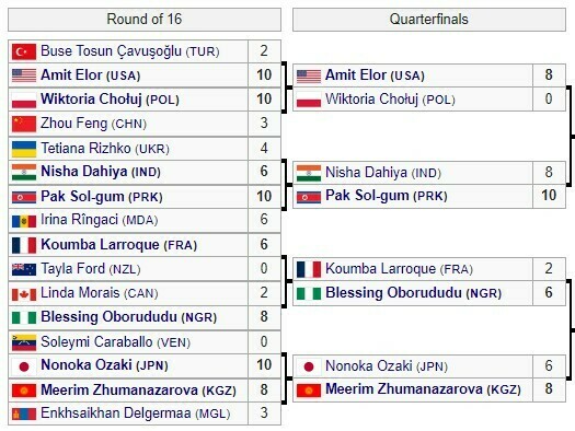 В четвертьфинале Ниша встретится с победительницей боя Пак Соль Гум (Северная Корея) – Ирина Рингач (Молдова).