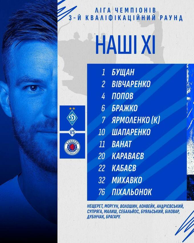Шовковский назвал стартовый состав Динамо на матч против Рейнджерс