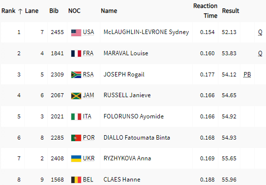 В полуфинале украинка стала седьмой, преодолев дистанцию за 55.65 секунд. Для выхода в финал нужно было попасть в топ-2 в своем забеге. Француженка Луиза Мараваль, которая стала второй, показала результат 53.85 с.
