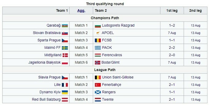 Первые матчи в оставшихся парах пройдут 7 августа, а ответные поединки запланированы на 13 августа.