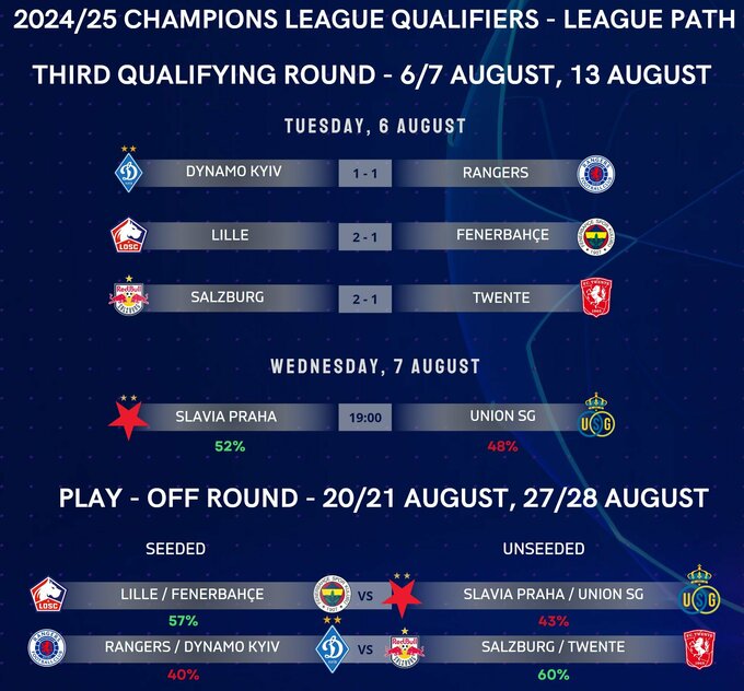 Вечером 6 августа состоялись первые матчи 3-го раунда квалификации (Q3) Лиги чемпионов 2024/25.