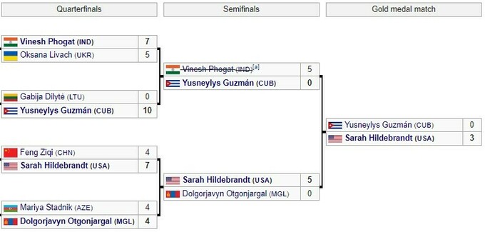 Юснелис Гузман из Кубы проиграла финал и получила серебряную медаль, а бронза досталась спортсменкам из Китая и Японии.