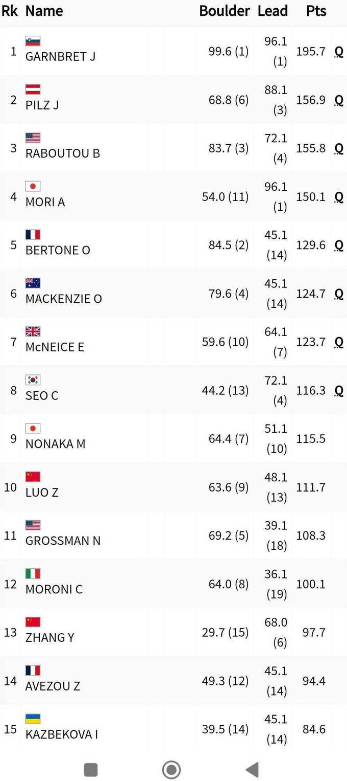 Отметим, что в этап боулдеринга Казбекова закончила с результатом в 39.5 очков.