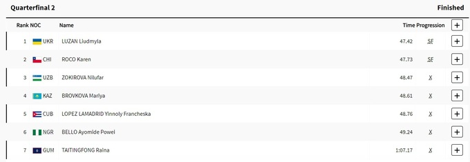 Лузан с результатом 47.42 с также выиграла свой заезд.