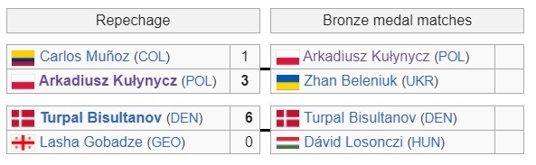 Аркадиуш Кулинич из Польши оказался сильнее Карлоса Муньоса из Колумбии – 3:1. Поляк является бронзовым призером ЧМ-2021.