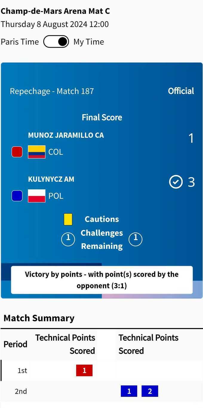 Состоялась утешительная схватка в соревнованиях по греко-римской борьбе в весовой категории до 87 кг на Олимпиаде-2024, где определялся соперник украинца Жана Беленюка в схватке за «бронзу».