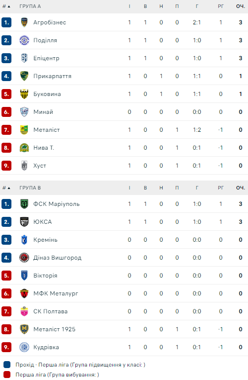 8 августа состоялись матчи 1-го тура второго по силе дивизиона Украины