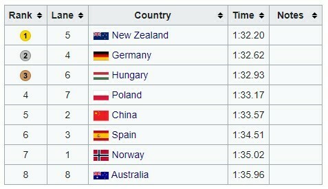 - 1. 🥇 Новая Зеландия – 1:32.20