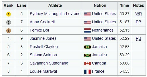 - 1. 🥇 Сидни Маклафлин-Леврон (США) – 50.37 WR