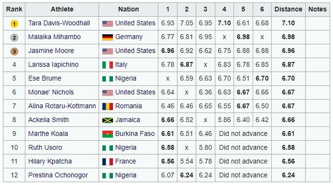 - 1. 🥇 Тара Дэвис-Вудхолл (США) – 7.10 м
