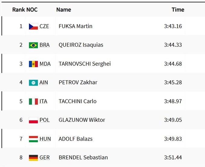 У мужчин в соревновании каноэ-одиночек на дистанции 1000 метров золото завоевал чех Мартин Фукса, который опередил бразильца Исакиаша Кейруша и молдаванина Сергея Тарновищи.