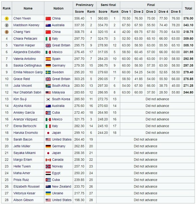Китайская прыгунья в воду Чэнь Ивэнь выиграла соревнования на 3-метровом трамплине. Это уже ее десятая подряд победа в этой дисциплине на топ-стартах и второе золото в Париже.