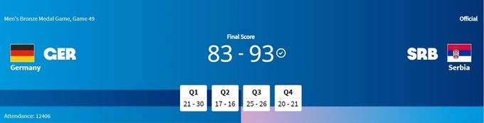 Германия – Сербия – 83:93 (21:30, 17:16, 25:26, 20:21)