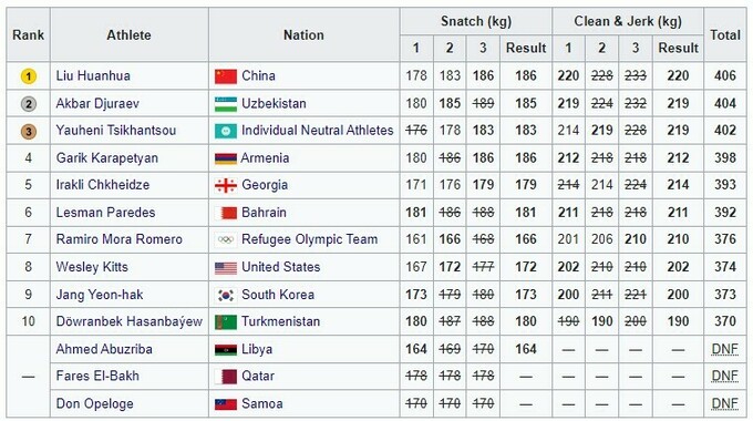 - 1. 🥇 Лю Хуаньхуа (Китай) – 406 кг (186 + 220)