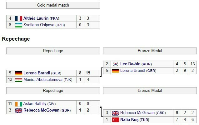 В категории свыше 67 кг среди женщин победила Алтея Лорен из Франции, одолел Светлану Осипову из Узбекистана.