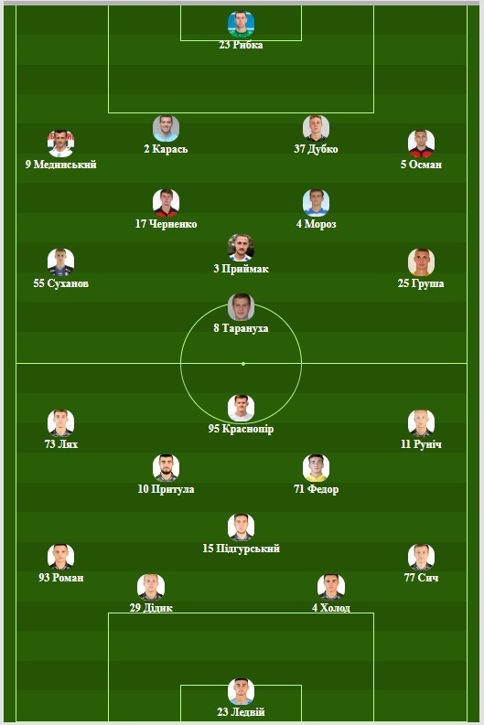 «Оболонь»: Рыбка, Осман, Дубко, Карась, Мединский, Черненко, Мороз, Груша, Приймак, Суханов, Тарануха