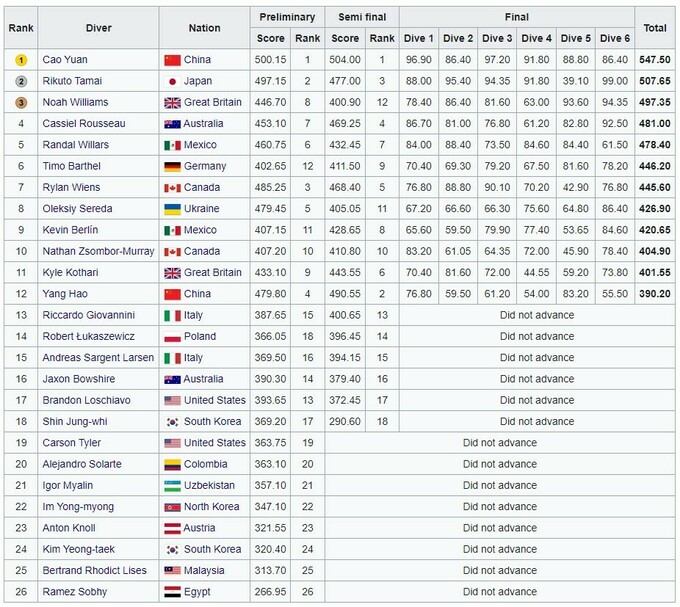 Украинский прыгун в воду занял 8-е место на ОИ в прыжках с 10-метровой вышки