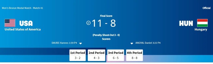 В битве за «бронзу» победу одержала команда США, которая обыграла Венгрию по пенальти.