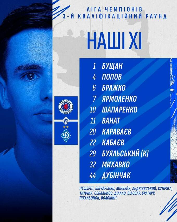 Назван стартовый состав Динамо на матч против Рейнджерс