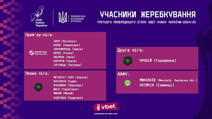 14 августа в 13:00 в Доме футбола в Киеве состоится жеребьевка третьего предварительного этапа Кубка Украины 2024/2025.