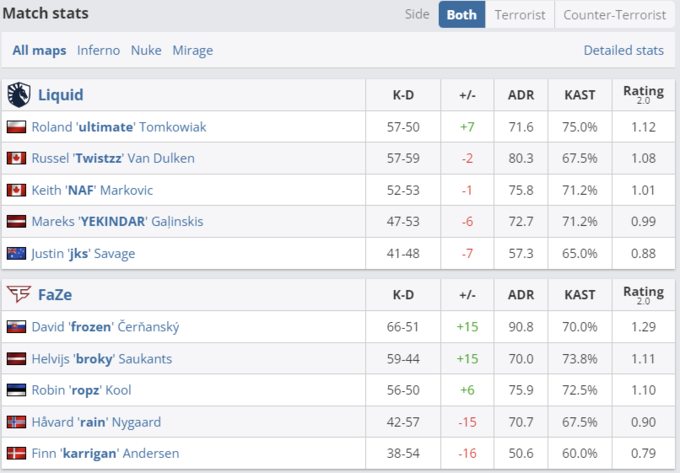Вторым был пик FaZe – Nuke. Первая половина была весьма неоднозначной и завершилась со счетом 6:6. Однако во второй датская организация взяла игру под свой контроль и довела матч до матчпоинта – 12:9. На решающем раунде FaZe отдали раунд 5 в 3 и после этого посыпались. Игра перешла на овертаймы, которые ушли в пользу Liquid со счетом 16:13.