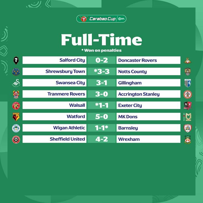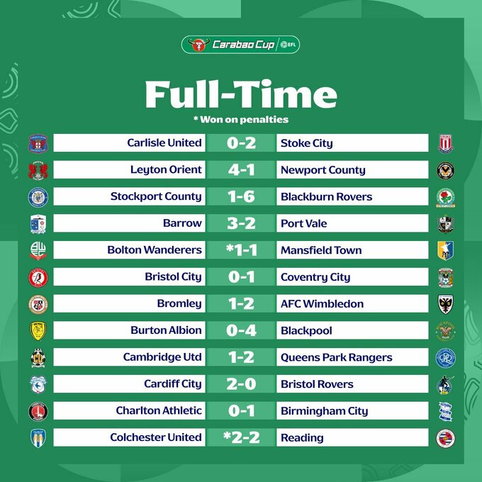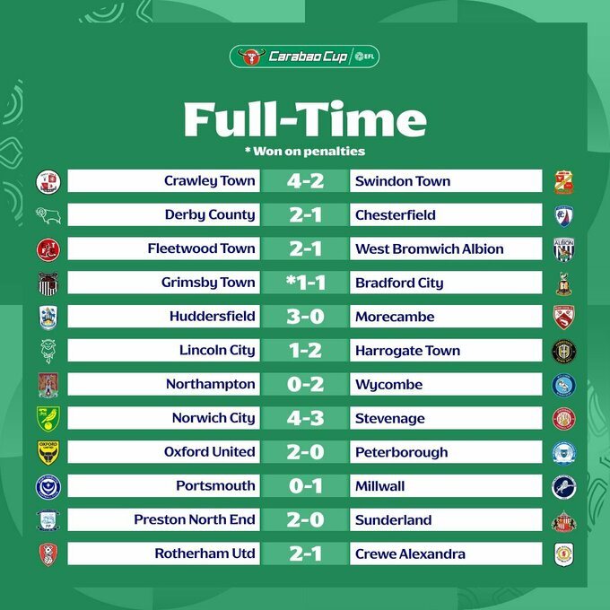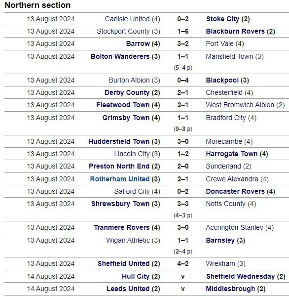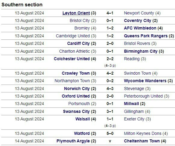 13 августа состоялись поединки 1-го раунда (1/64 финала) Кубка английской лиги.