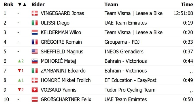 Лидерство в общем зачете сохранил партнер Кооя по «Visma Lease a Bike», датчанин Йонас Вингегор.