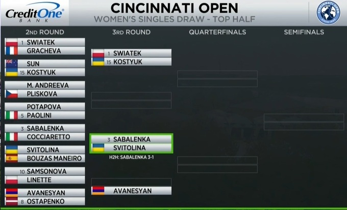 Третья ракетка мира Арина Соболенко обыграла итальянку Элизабетту Коччаретто (№66 WTA) во втором круге турнира WTA 1000 в Цинциннати (США) и в 1/8 финала сразится против украинки Элины Свитолиной.