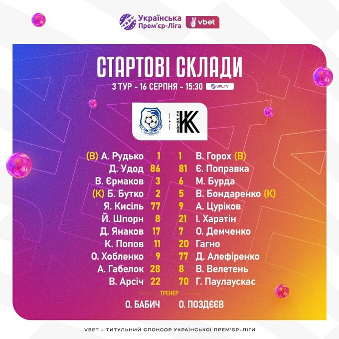 «Колос»: Горох, Цуриков, Бондаренко, Бурда, Поправка, Харатин, Демченко, Гагно, Алефиренко, Велетень, Паулаускас