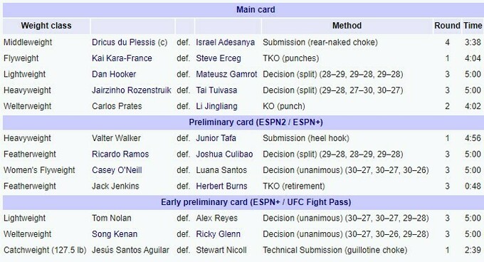 В главном бою встретились: Дрикус дю Плесси (ЮАР, 21–2) та Исраєль Адесанья (Новая Зеландия / Нигерия, 24–3).
