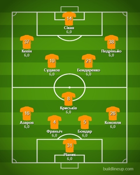 Шахтер: Резник, Азаров, Франьич, Бондарь, Конопля, Крыськив, Судаков, Бондаренко (Степаненко, 88), Кевин (Эгиналду, 46, Педро Энрике, 78), Педриньо (Невертон, 90+4), Сикан (Траоре, 88).