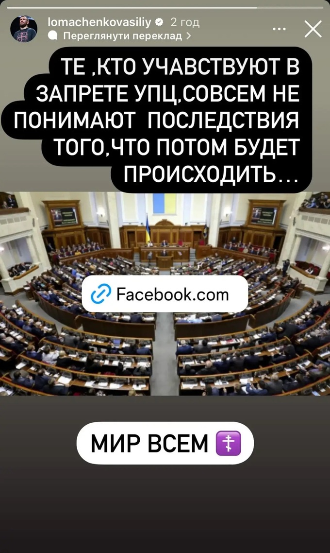 «Те, кто участвует в запрете УПЦ, совсем не понимают последствий того, что потом будет происходить... Мир всем», – сказал Ломаченко.