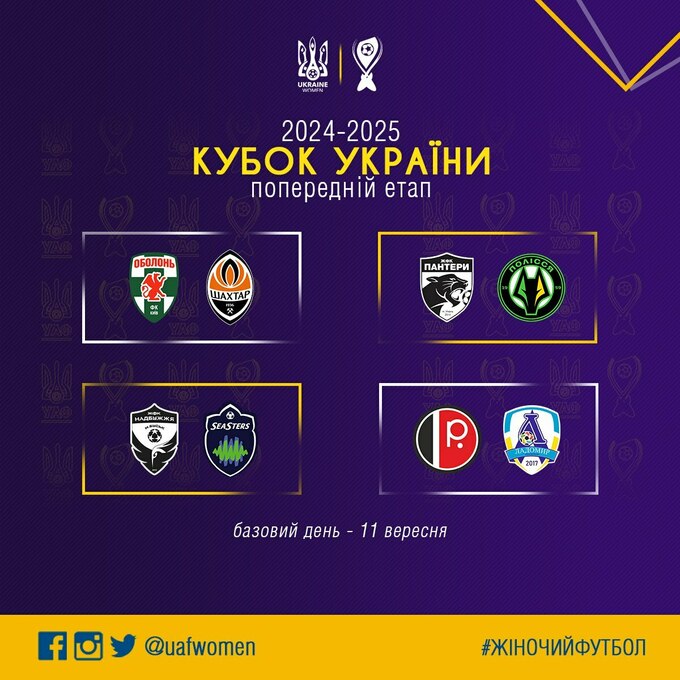 Жеребьевка пар предварительного этапа Кубка Украины 2024/2025 среди женщин