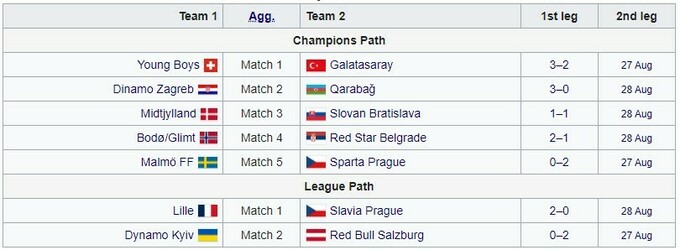 Ответные поединки запланированы на 27 и 28 августа. Команды, которые выиграют противостояние Q4 ЛЧ, попадут в основной раунд Лиги чемпионов. Команды, которые проиграют, осенью будут играть в основном раунде Лиге Европы.