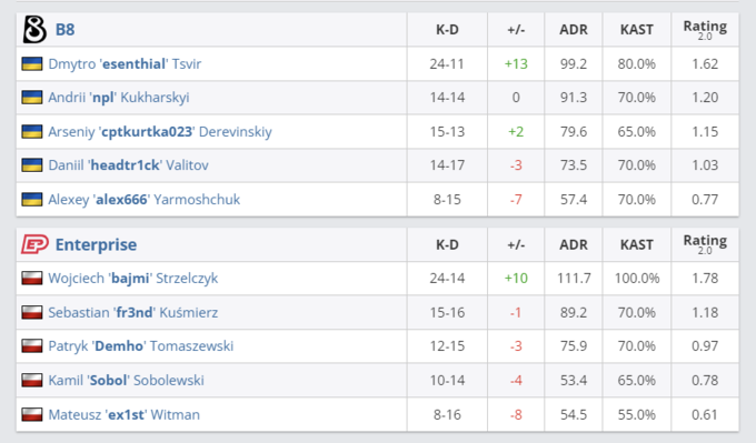 Для игры команды остановились на выборе карты Nuke. Первая половина матча завершилась с ничейным счетом 6:6. Однако во второй части карты украинская команда уничтожила оппонента со счетом 7:1. Как итог – уверенная победа 13:7