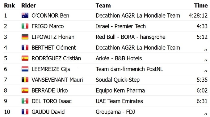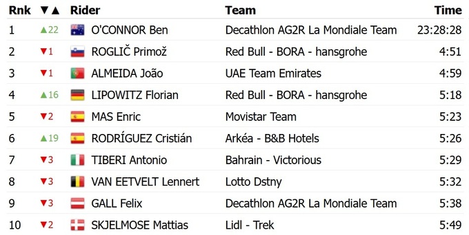 Эта победа позволила О’Коннору перехватить у словенца Приможа Роглича из «Reb Bull Bora» красную майку лидера общего зачета.