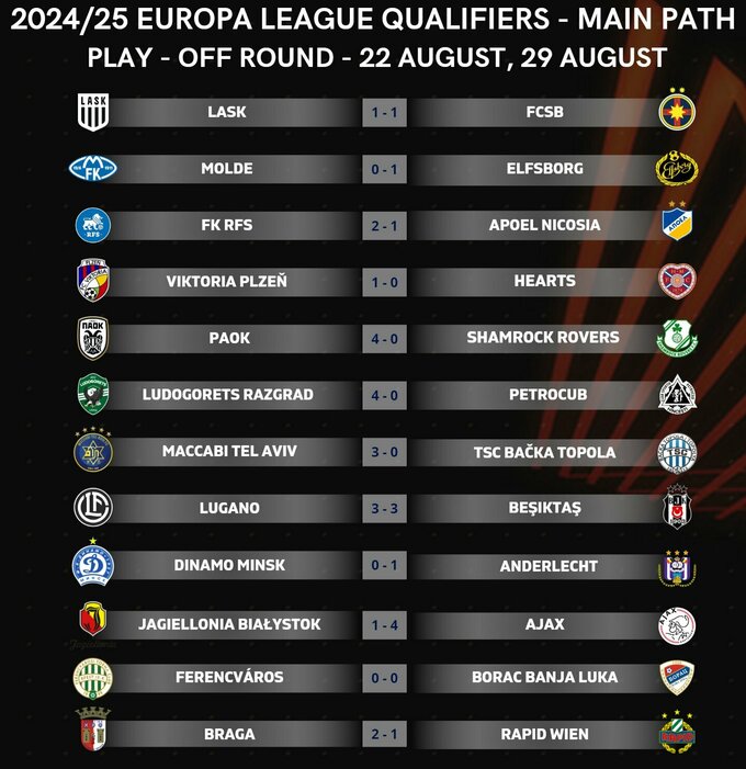 Вечером 22 августа состоялись первые матчи 4-го раунда квалификации (Q4) Лиги Европы 2024/25.