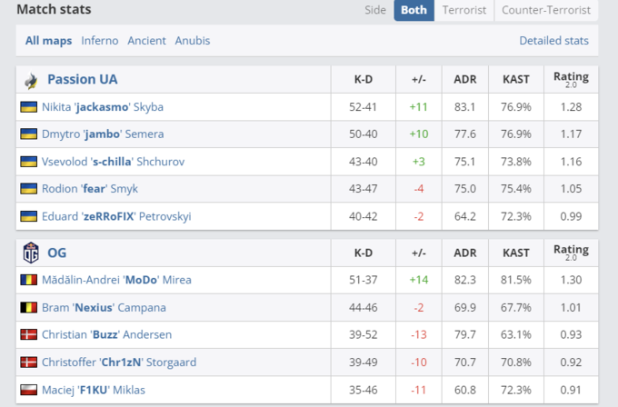 Десайдером матча стал Anubis. Passion уверенно выиграли первую половину со счетом 9:3, а во второй просто закрыли оппонента со счетом 13:8.