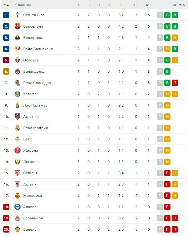 После двух туров «Барселона» с 6 очками делит лидерство с «Сельтой».